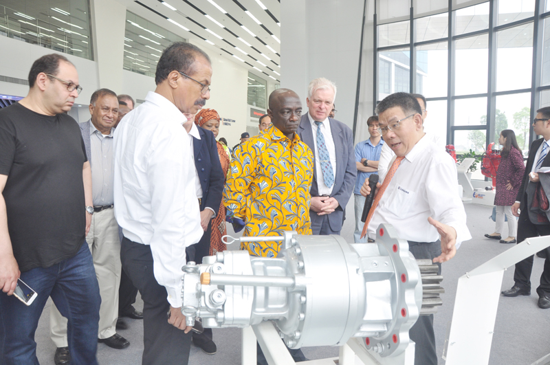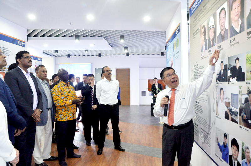 曾光安用流利的英語向來訪貴賓表示熱烈的歡迎,并對柳工發(fā)展大事記、柳工技術(shù)研發(fā)平臺建設(shè)及柳工一帶一路的海外業(yè)務(wù)布局等方面做了精彩分享。曾光安說,希望未來能與來訪的大使所在國家有更多的合作。來訪的貴賓全程全神貫注,認(rèn)真聆聽,無不對柳工的快速發(fā)展步伐表示贊嘆。